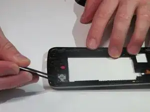 Пинцетом снимите динамик со средней рамки.