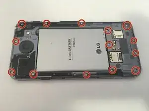 Убедитесь, что вы сначала сняли аккумулятор. Вы увидите 14 винтов на задней стороне внутреннего корпуса. Используйте крестовую отвертку, чтобы удалить каждый из винтов, убедитесь, что вы положили винты в безопасное место, чтобы они не потерялись.