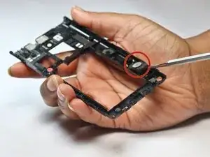 Удалите 12 винтов (с отверткой Phillips 000) вокруг рамки и рядом с SIM- и SD-картами.