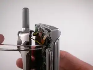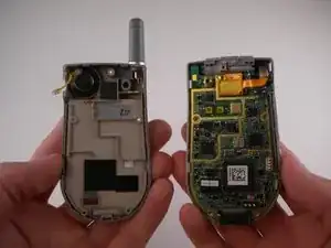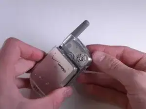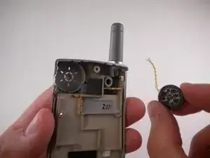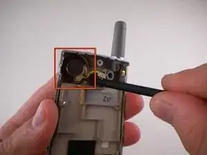 Возьмите верхнюю половину телефона и подденьте динамик с помощью лопатки.
