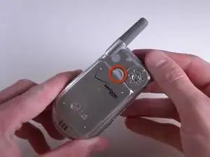 Крепко нажмите вниз и вперёд на серую перемычку в центре телефона.