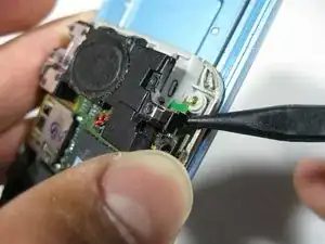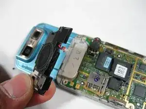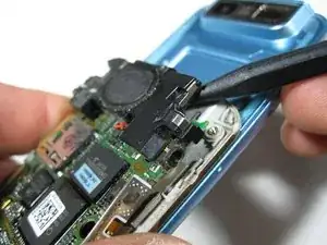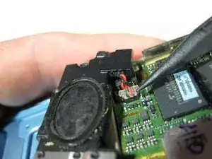 Осторожно отключите разъем динамика от печатной платы пальцами.