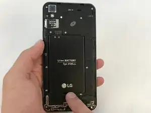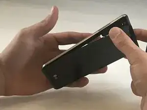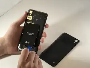 Вставьте пластиковой лопаткой в место крепления на задней нижней левой части телефона.