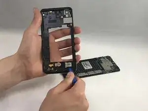 Вставьте пластиковой лопаткой в щель вокруг корпуса динамика на средней защитной рамке.