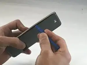 Создайте зазор пластиковой лопаткой, нажав между стеклянным экраном и пластиковым краем корпуса.