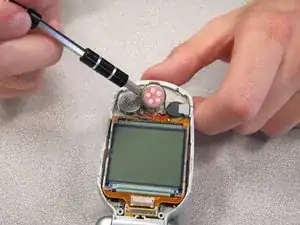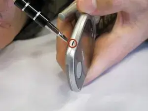 Подденьте динамик, который приклеен к передней крышке, с помощью маленькой плоской отвертки.
