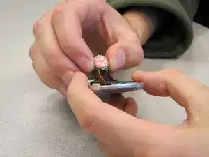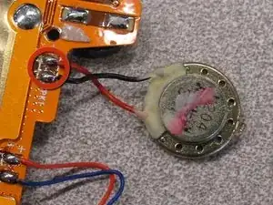 Отпаяйте черный и красный провода динамика от места, где они прикреплены к основанию экрана.