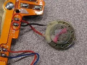 Приобретите замену динамика и припаивайте новые черный и красный провода обратно к основанию экрана.