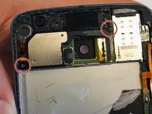 Удалите два винта Torx T4 (1,28 мм), удерживающие динамик.