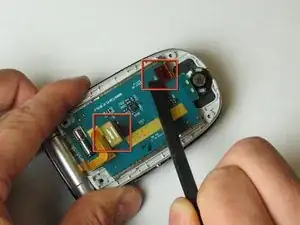 Отстегните соединения схемы, расположенные на задней стороне печатной платы экрана, с помощью лопатки.