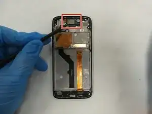 С помощью медиатора iFixit и инструмента для вскрытия оторвите сканер отпечатков от задней крышки.