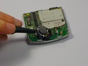 Используйте пинцет, чтобы удалить крошечные красные и синие резиновые накладки, расположенные на верхней части антенны.