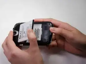 Вставьте большой палец и вытяните аккумулятор.