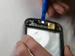 Используйте инструмент для открытия, чтобы поддеть динамик от передней панели.