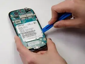 Используйте инструмент для открытия, чтобы поддеть пластиковую заднюю панель и обнажить материнскую плату.