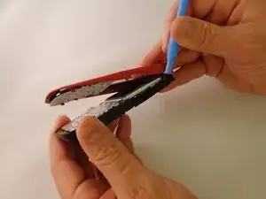 Используя лопатку, подденьте три зажима с левой стороны и три зажима с правой стороны корпуса.