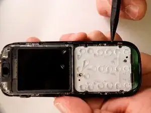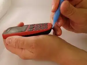 С помощью больших пальцев надавите и скользите вниз по задней крышке Nokia 1010.