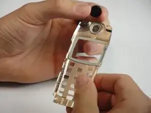 Снимите металлическую рамку, удерживающую экран и динамик.