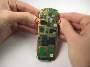 Чтобы снять материнскую плату, поднимите ее вверх и снимите с телефона.