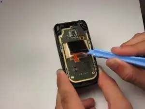 Медленно отведите разъём шлейфа из его гнезда с помощью пластикового медиатора.