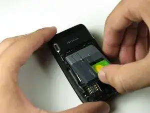 Надавив большим пальцем на заднюю крышку, сдвиньте крышку, чтобы снять её с телефона.