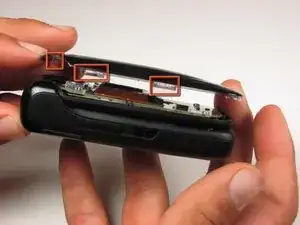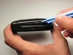 Держа телефон закрытым, проведите пластиковым медиатором вдоль стыка верхней половины телефона.