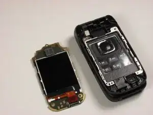Этот ремонт требует полного вскрытия устройства и предполагает снятие батареи, обоих дисплейных модулей и основной платы для доступа к динамику. В процессе придётся аккуратно отвести и отключить несколько тонких шлейфов и элементы на клеевой основе.