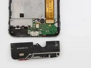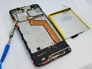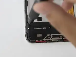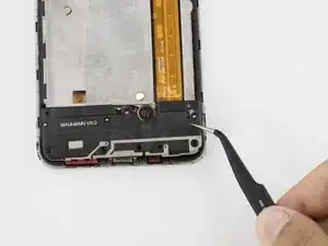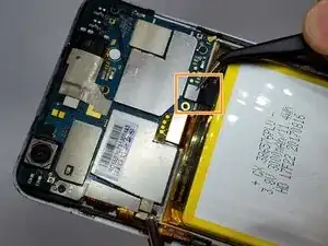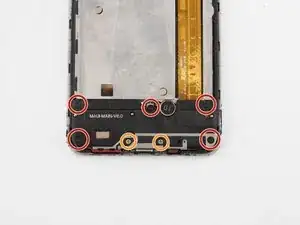 В верхней правой части находится чёрный ленточный кабель в форме «Г». Удалите один винт Phillips #000 длиной 1 мм с левой стороны ленточного кабеля.