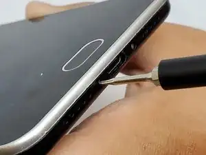 Используйте отвёртку Phillips #000, чтобы удалить два серых винта длиной 2 мм.