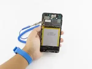 Перед продолжением закрепите антистатический браслет на запястье и подсоедините зажимы к металлической части телефона.