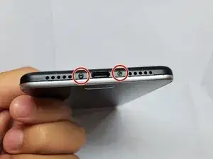 Удалите два винта Torx TR9 длиной 2 мм с нижней части устройства.