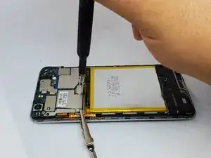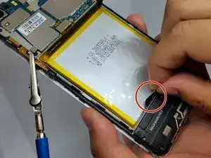 Сожмите этот язычок пальцами и аккуратно вытяните батарею вверх и из корпуса телефона.