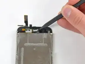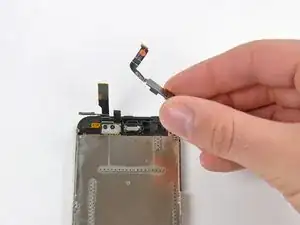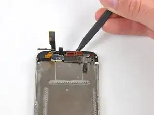 Вытяните ленточный кабель из разъёма и снимите блок дисплея с iPhone.
