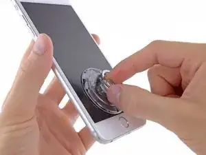 Держите iPhone одной рукой и потяните вверх за присоску, чтобы немного отделить сборку передней панели от задней крышки.
