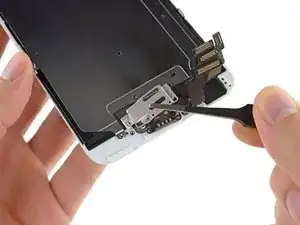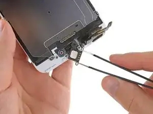 Используйте пинцет, чтобы крепко схватить и удалить динамик из сборки дисплея.
