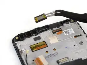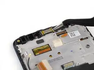 Используйте пинцет, чтобы поднять динамик разговорного наушника из его гнезда и извлечь его.