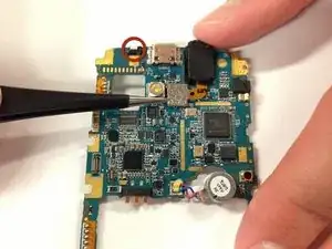 Осторожно приподнимите материнскую плату с задней части телефона.