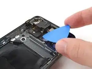 Подденьте открывающим медиатором нижний правый угол динамика слухового канала, чтобы отделить его от рамки.
