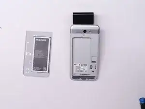 Переверните телефон на заднюю сторону, откуда была удалена батарея.