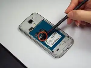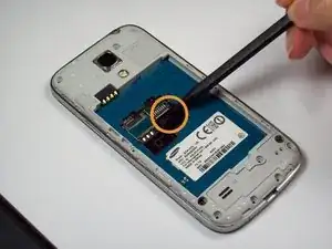 Выньте батарею с помощью пластикового инструмента для открывания.