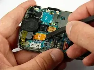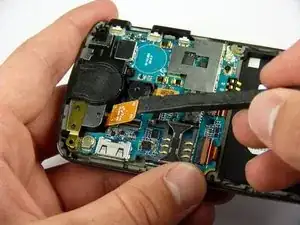 Используйте лопатку, чтобы отсоединить шлейф динамика.