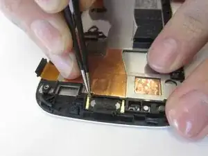 С правой стороны есть пространство, где с помощью тонких пинцетов вы можете осторожно поддеть динамик из его корпуса.