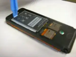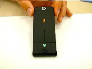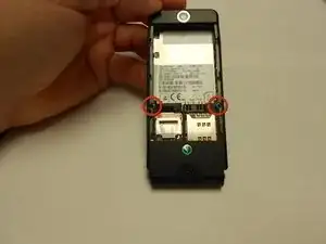 Переверните телефон и снимите наклейку Sony Ericsson, которая находится над динамиком.