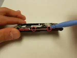 Используя инструмент для открытия и аккуратное движение наружу, отделите переднюю панель от внутренних механизмов телефона.