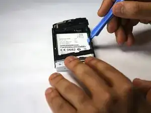 Поднимите черную заднюю крышку с корпуса с помощью пластикового инструмента.