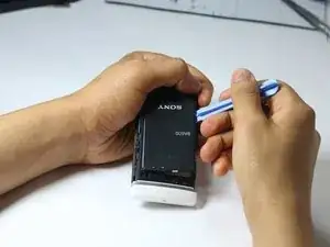 Откройте заднюю часть устройства, поддевая по сторонам задней панели с помощью пластикового инструмента для открытия.