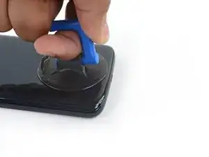 Проведите лопатку вдоль верхнего края телефона, чтобы разрезать клей, фиксирующий заднее стекло.