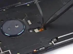 Используйте пинцет, чтобы снять держатель шлейфа датчика отпечатков пальцев.