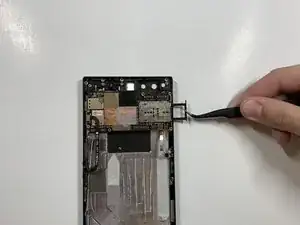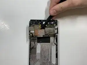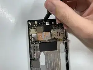 Схватите разъём с правой стороны телефона (сверху от аккумулятора) пинцетом.