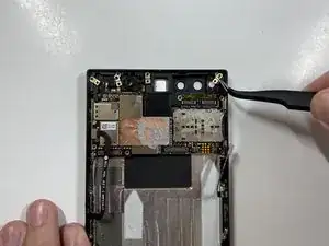 Возьмите свободные разъёмы пинцетом и аккуратно извлеките модуль задней камеры из телефона.